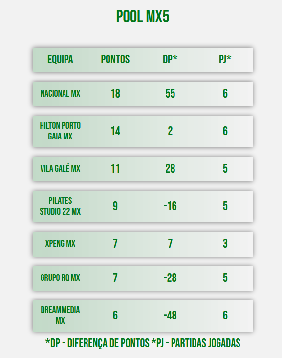 *DP - Diferença de Pontos *PJ - Partidas Jogadas